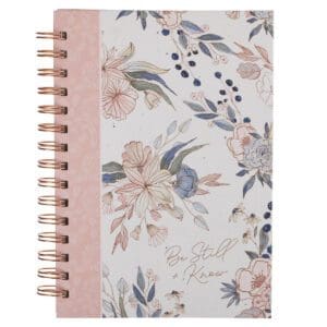 Be Still and Know Pink and Blue Floral Large Hardcover Wirebound Journal