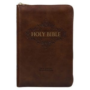 NLT Brown Faux Leather Flexcover Compact Bible With Zip