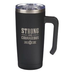 Strong and Courageous Black Stainless Steel Travel Mug with Handle