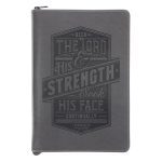 Seek the Lord & His Strength, Seek His Face Grey Faux leather Journal with Zipped Closure