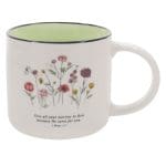 Give All Your Worries to Him Because He Cares for You Floral Ceramic Mug with Green Interior
