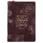 She Is Clothed with Strength and Dignity Burgundy Faux Leather Journal with Zipped Closure