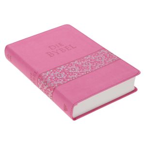NLV Pienk Glinster Kunsleer Standaard Bybel Met Duimgrepe
