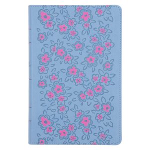 NLV Ligblou Met Pienk Blomme Kunsleer Standaard Bybel Met Duimgrepe