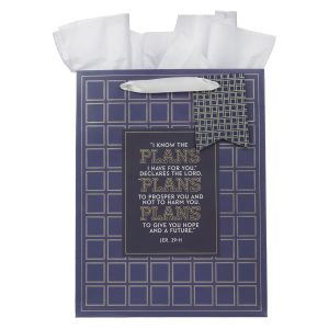 I Know the Plans Grid Navy Portrait Gift Bag with Gift Tag