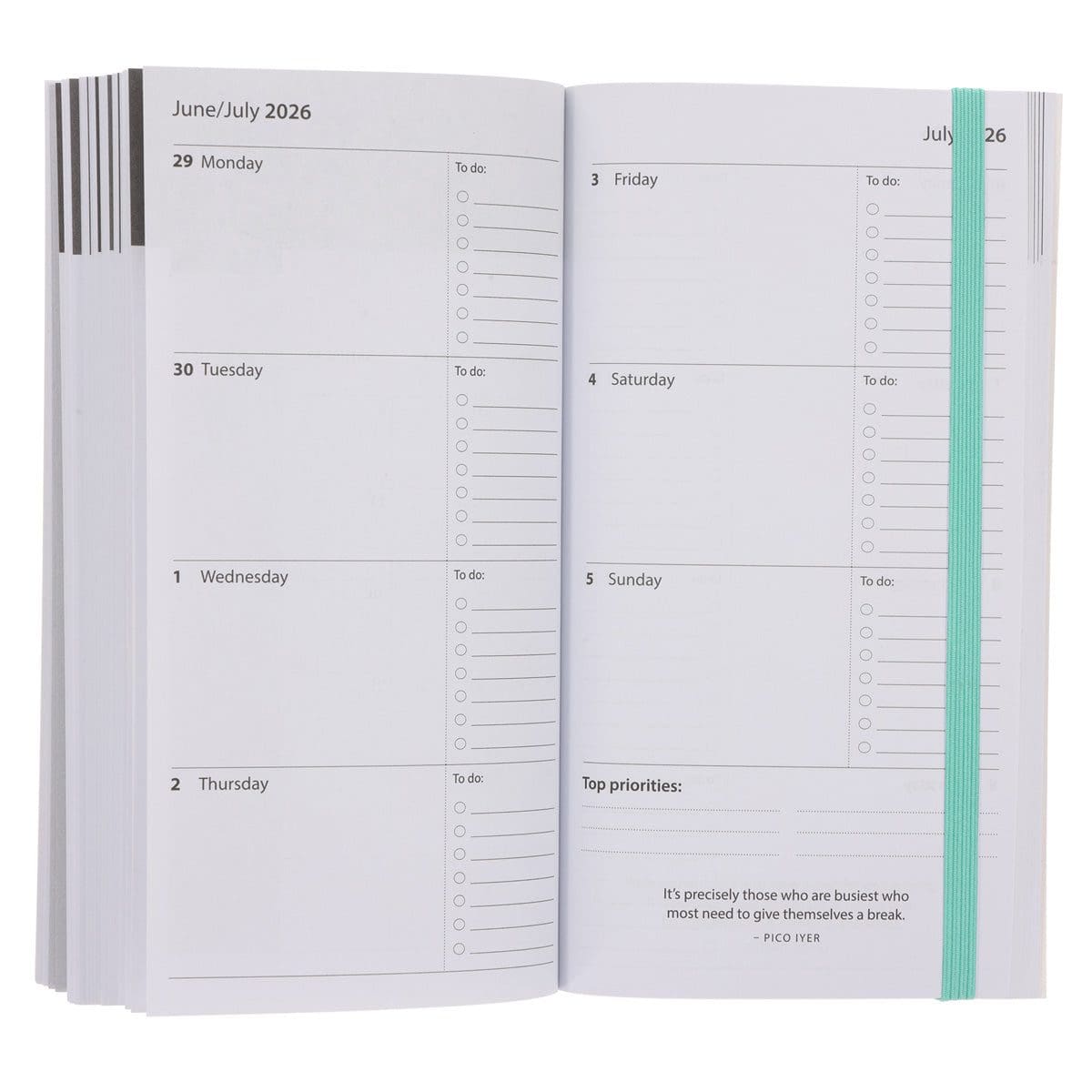 With their contemporary designs and convenient carry-along size, these 2026 pocket diaries contain all the features of our bestselling daily planners, and the motivational quotations will inspire readers with confidence and a positive outlook on life.