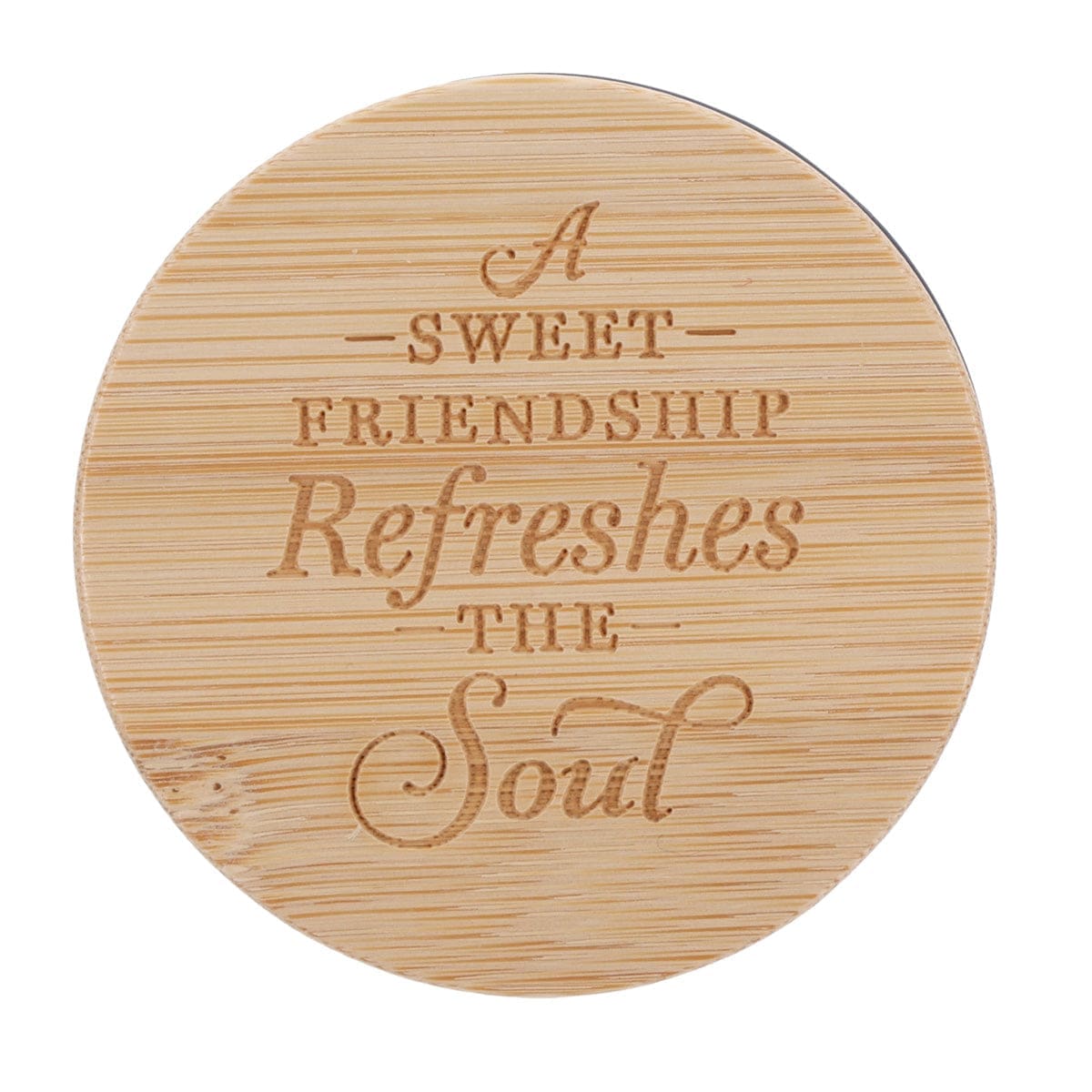 Indulge your senses with the gorgeous bouquet of beautifully crafted delicate scents in the A Sweet Friendship Refreshes the Soul Lotus Blossom Scented Candle with Bamboo Lid.