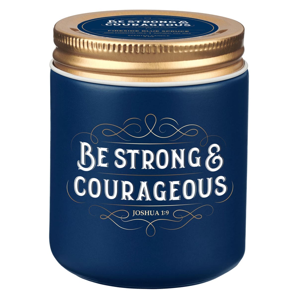 Be Strong and Courageous Fireside Blue Spruce Scented Candle with Screw Top Lid