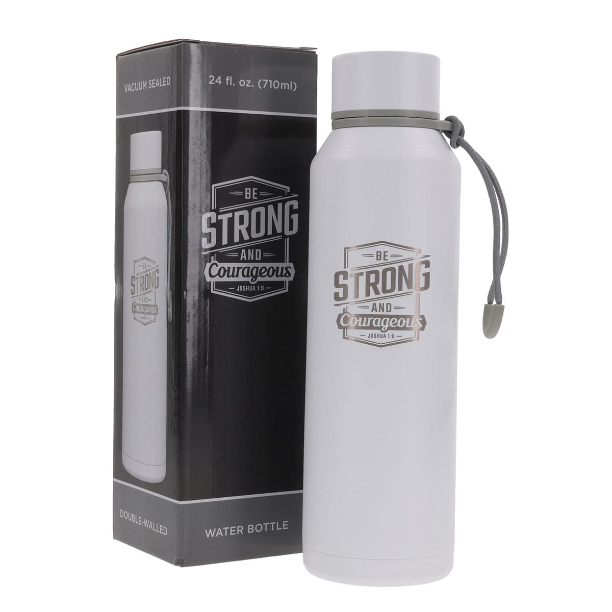 Be Strong and Courageous White Stainless Steel Water Bottle