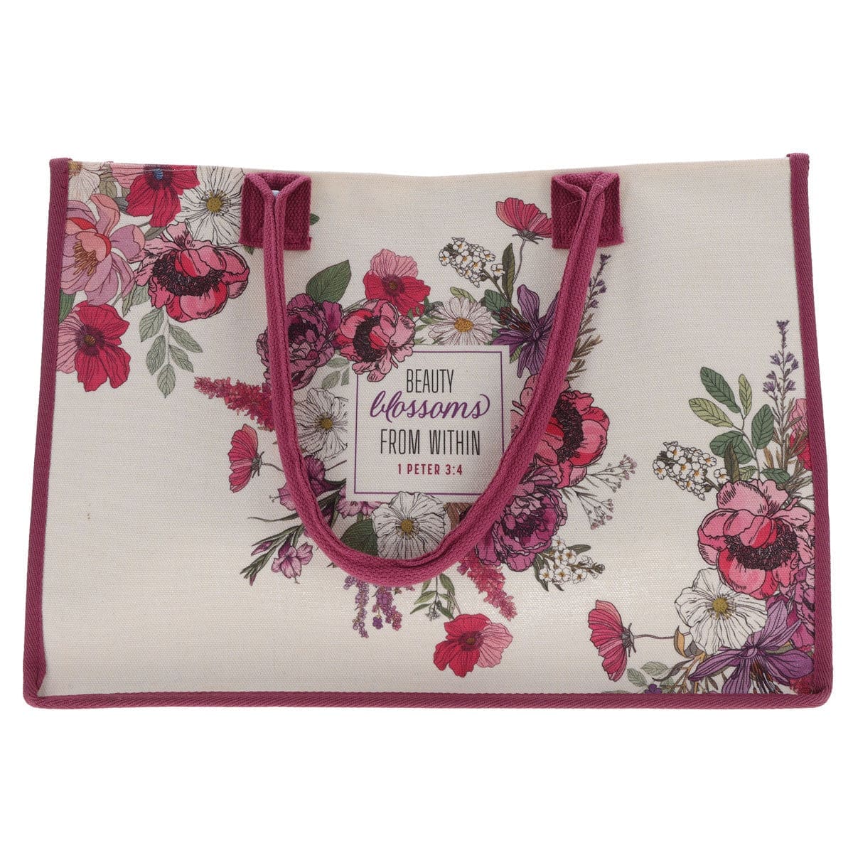 Carry faith and style wherever you go with the Beauty Blossoms from Within Canvas Tote Bag. Featuring a secure magnetic closure, soft inner lining, and comfortable rolled handles, this spacious tote is perfect for daily essentials. Durable and faith-inspired, it’s a beautiful reminder of God’s promises—ideal for church, errands, or everyday use with a touch of grace.