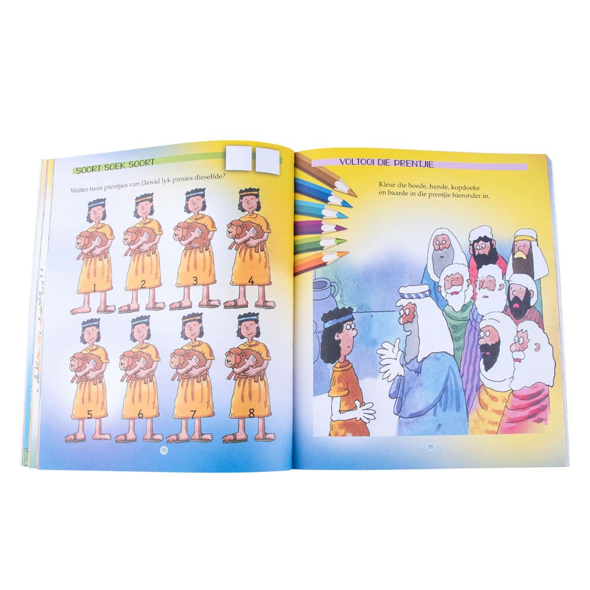 Behalwe ’n liefde vir die Woord sal die Bybelstorie-aktiwiteitsboek ook 5- tot 8-jariges se syfervaardigheid, probleemoplossingsvaardighede, geheue en leesvaardigheid verbeter.