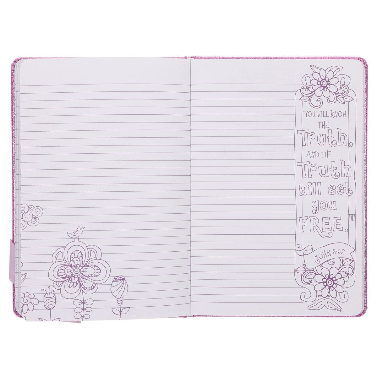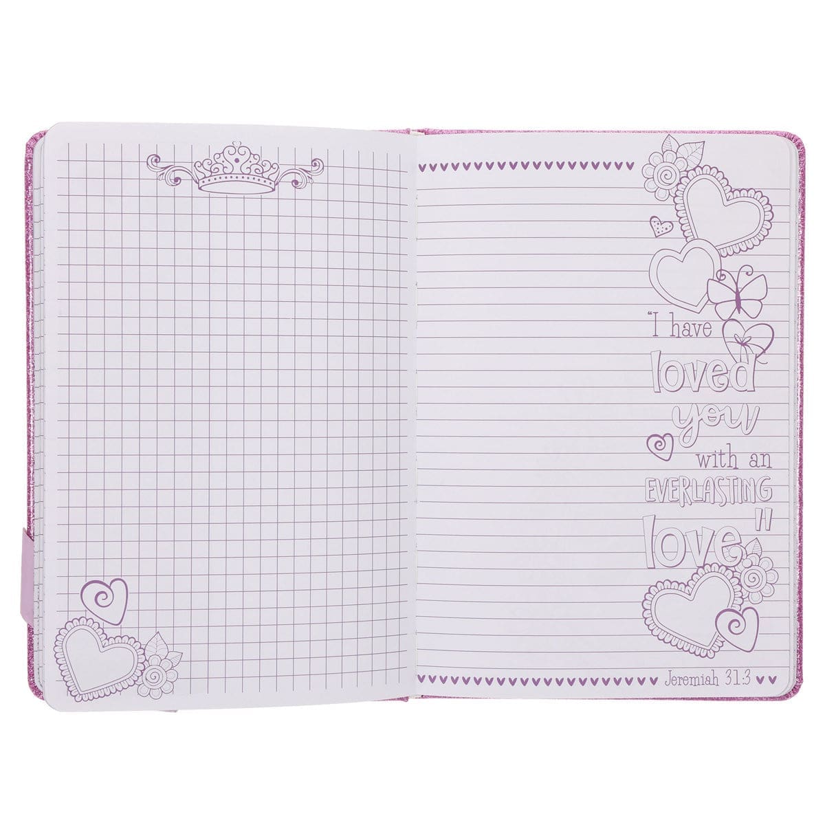 This 96-page girls’ Creative Hardcover Journal blends lined, bulleted, and graph paper with colorable Bible verse illustrations featuring hearts, butterflies and flowers. It’s a joyful space for creativity, reflection, and faith-filled expression.