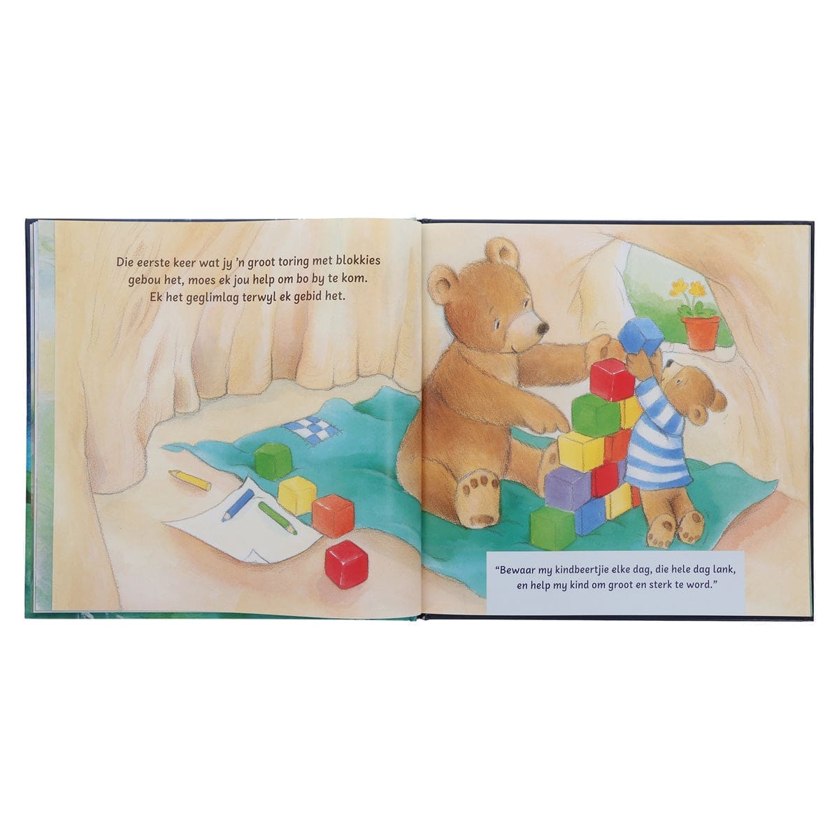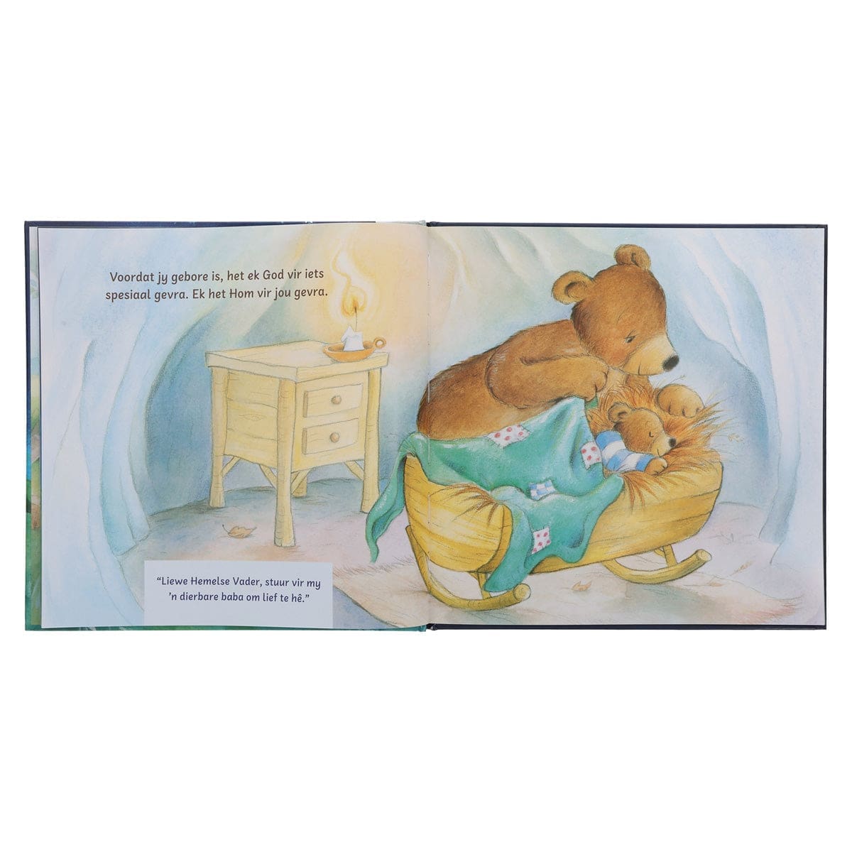 Hierdie plaaslike uitgawe van die pragtige storie volg ‘n mammabeer se pad van voor haar kindjie se geboorte tot sy eerste dag op skool en hoe sy oor en vir haar kind bid.