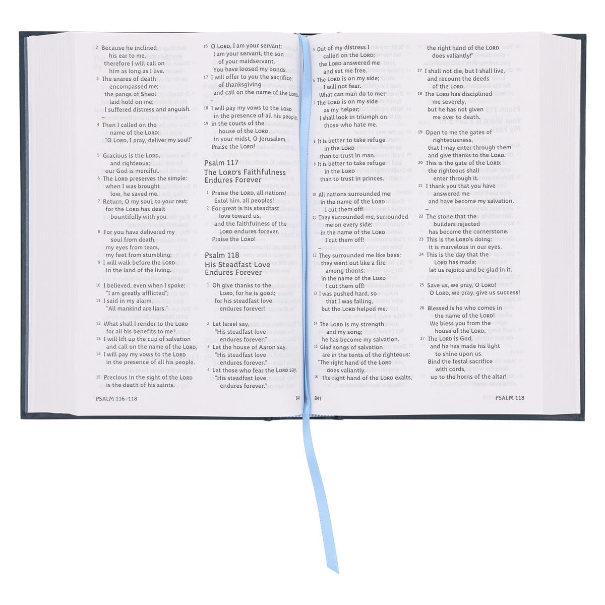 Developed in partnership with Klaus Krogh of 2K and Cambridge University’s research department, bottom-weighted letters and distinctive characteristics help readers differentiate similar letterforms. A unique typesetting features generous spacing between letters, words, lines, and paragraphs, making the text even easier to read. Provided color overlays can be placed on top of the Bible text to reduce visual strain and offer additional comfort. Researched and tested, this Bible has proven to be a valuable resource in making God’s Word more accessible to those who have dyslexia.