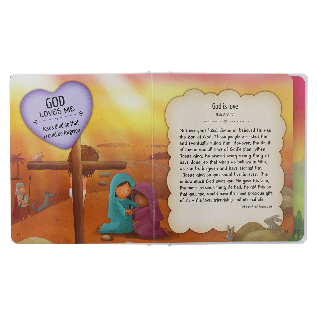 The 18 Bible stories in this book unpack the wonderful fact of God’s love and gives each child the possibility of learning that they are precious beyond measure in God’s sight. Each Bible story is backed by carefully chosen and well-known Bible verses emphasizing the truth in each story. Simple text and charming illustrations make God Loves Me Bible the ideal book for little ones. Together with the heartwarming illustrations, these stories will give children a firm understanding of the message of the Bible so they can confidently say, “God loves me” and know why, too!