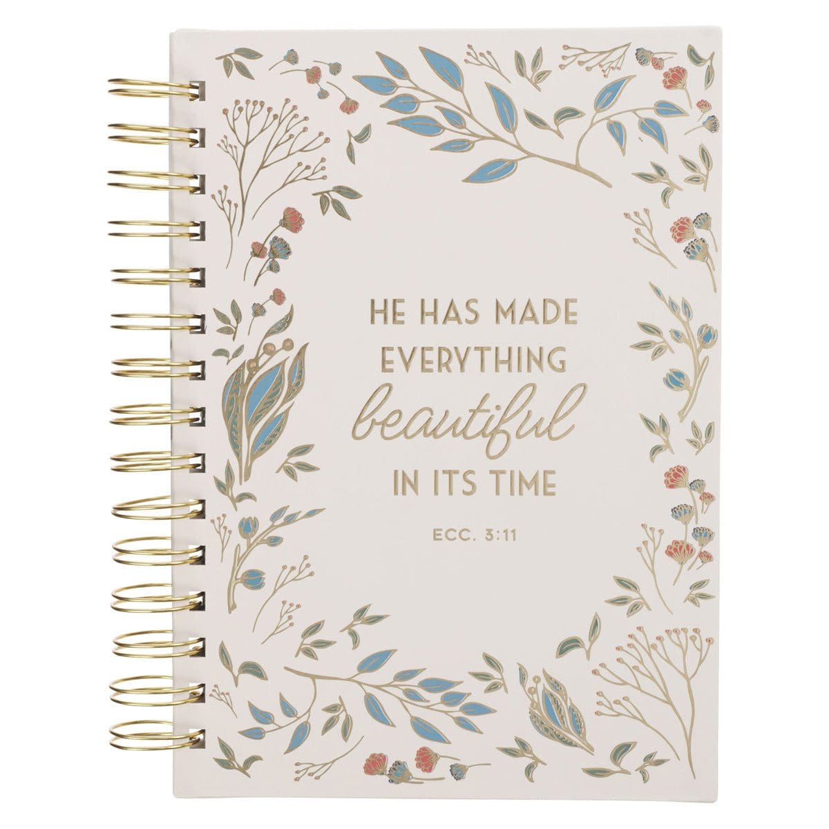 He Has Made Everything Beautiful in Its Time Ivory Floral Large Hardcover Wirebound Journal