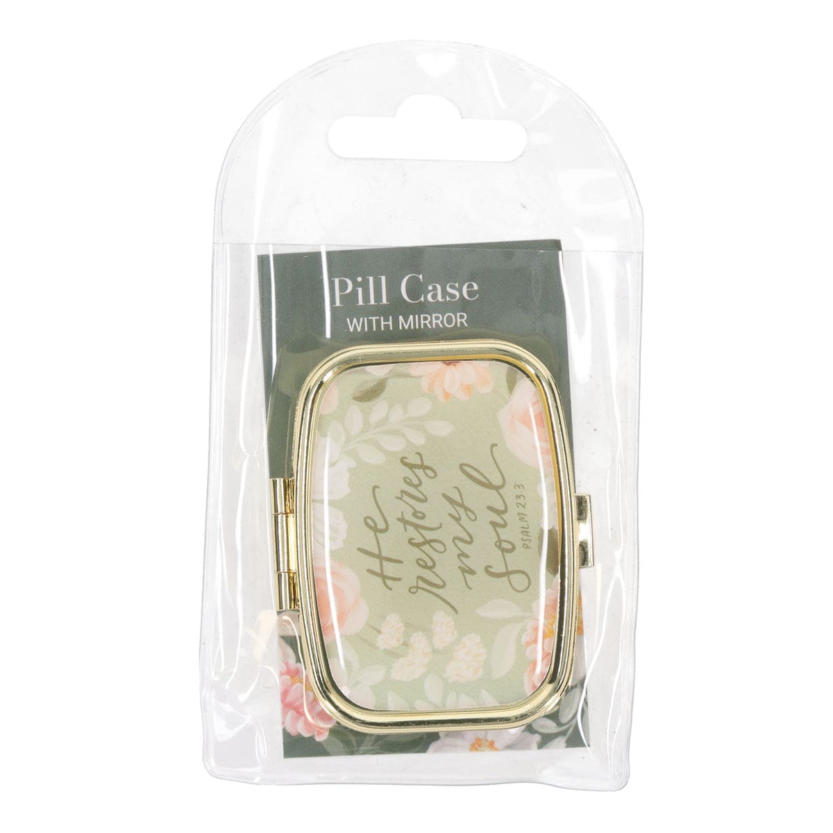 He Restores My Soul Epoxy Gold Metal Pill Case with Mirror