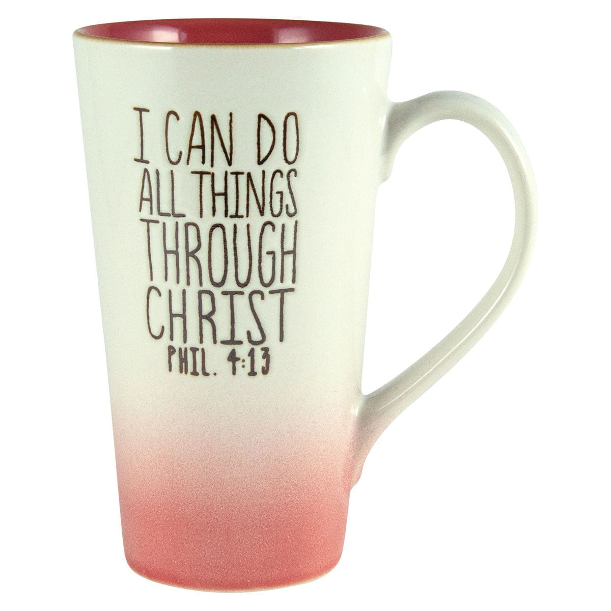 I Can Do All Things Through Christ Pink & White Ombre Ceramic Mug