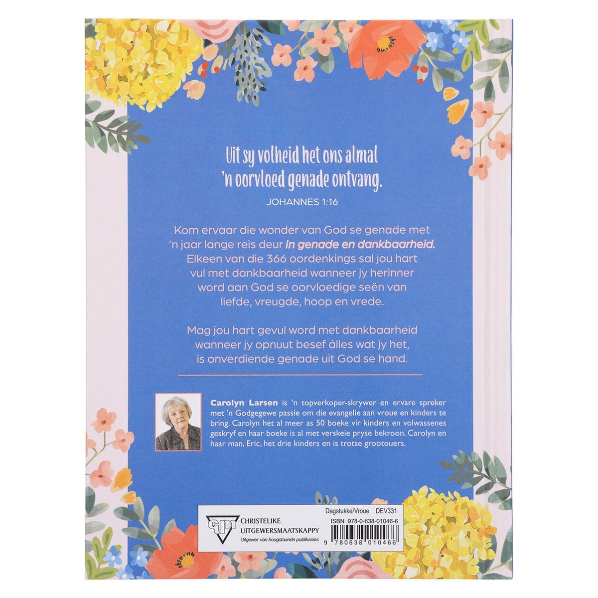 Elke dag bevat ’n toepaslike teksvers, ’n kort oordenking deur Carolyn Larsen en vrae om oor na te dink.