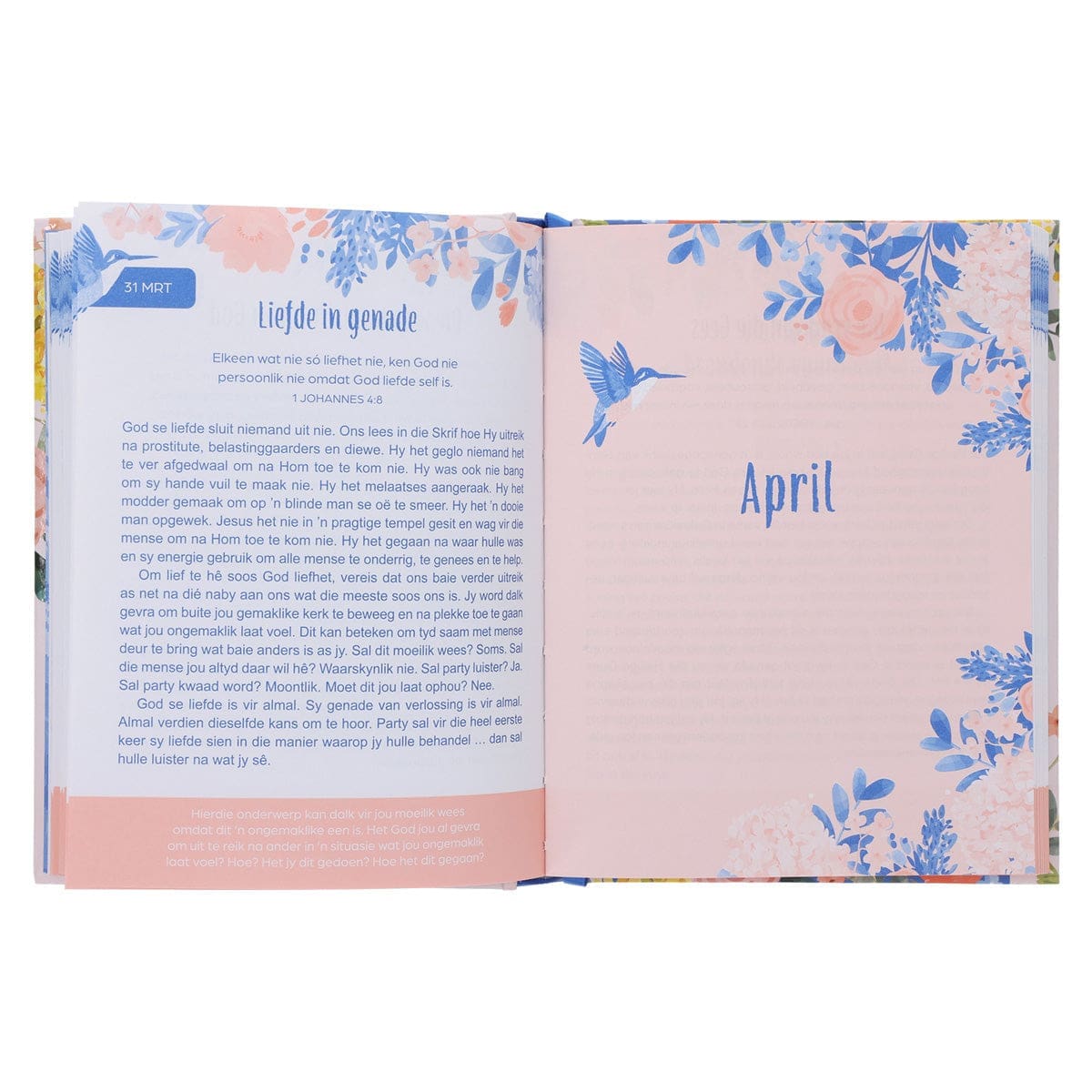 - Elke dag het ’n toepaslike teksvers, ’n kort oordenking en vrae vir nadenke.