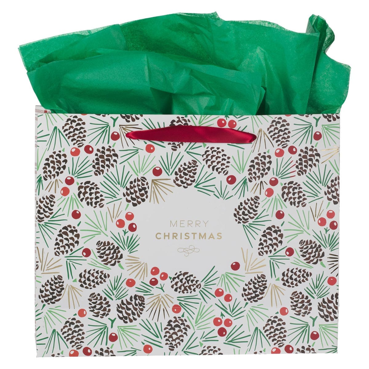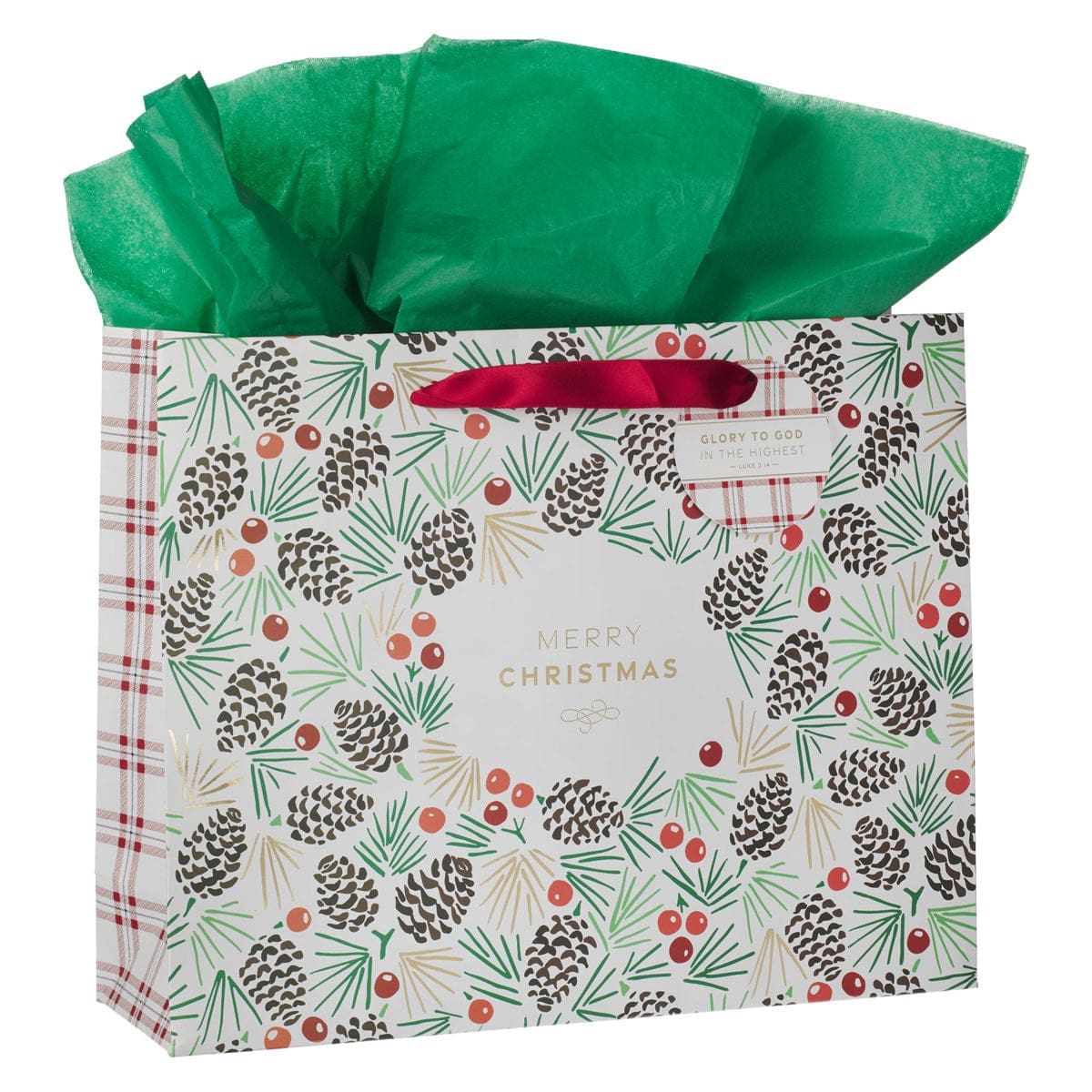 Celebrate the season with our Merry Christmas Landscape Gift Bag, featuring a charming design with pine cones and festive greenery. The elegant landscape print brings a touch of nature’s beauty to your holiday gifts. It comes with a plaid gift tag for easy personalization, adding a classic touch to your presentation. Perfect for wrapping gifts for family and friends, this sturdy bag ensures your presents are beautifully packaged, bringing extra cheer to your Christmas celebrations.