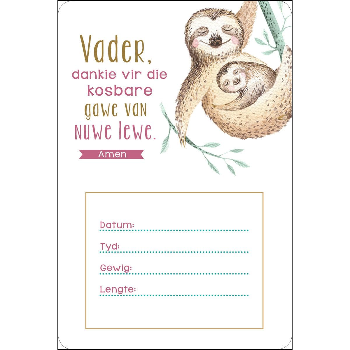 Hierdie kaartjies met pragtige illustrasies kan ingesluit word in foto’s van baba om haar ontwikkeling en spesiale mylpale met geliefdes te deel.
