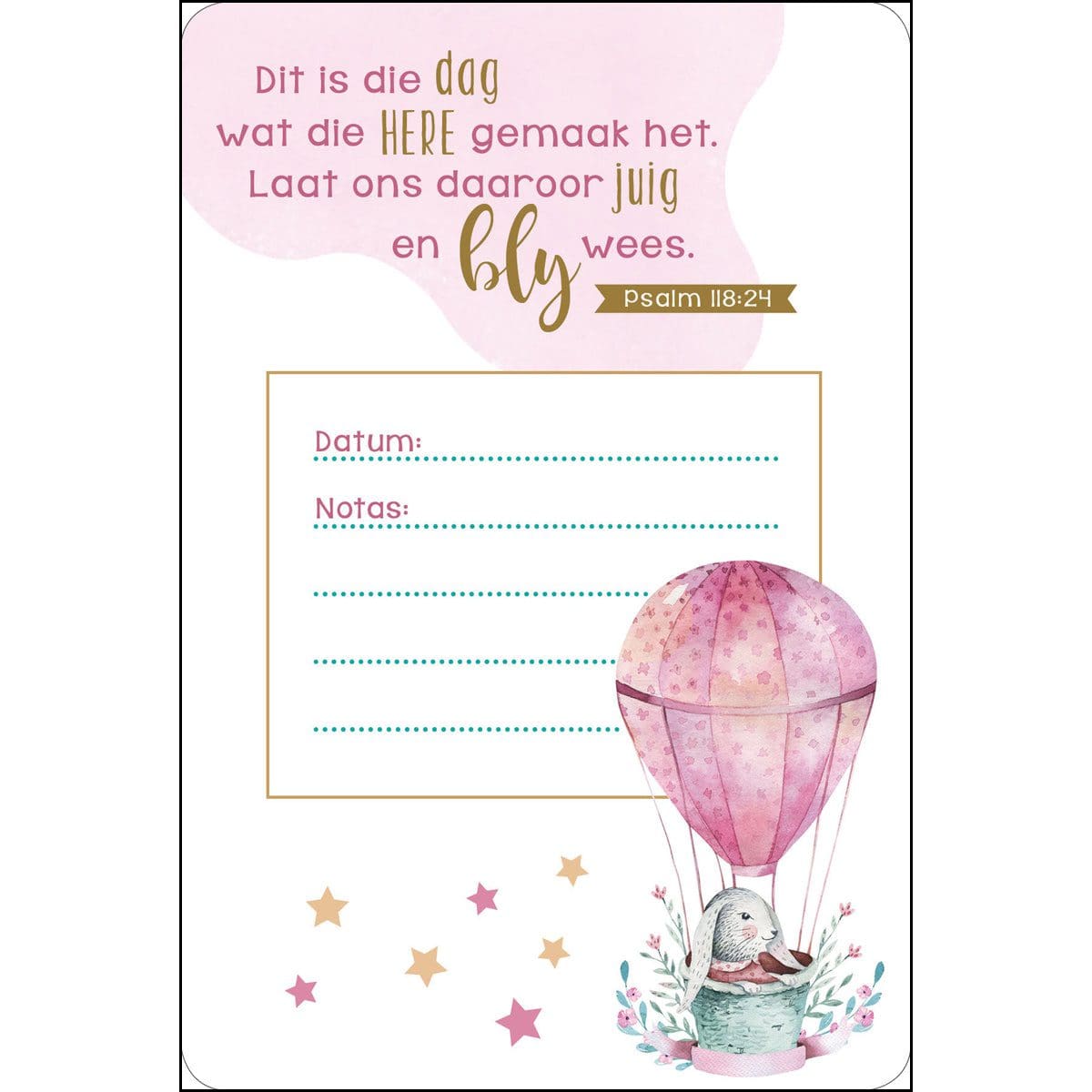 My babadogtertjie se mylpale is 24 kostelike kaartjies, weerskante gedruk, om die mylpale en kosbare oomblikke in ’n baba se eerste weke, maande en jaar vas te vang.