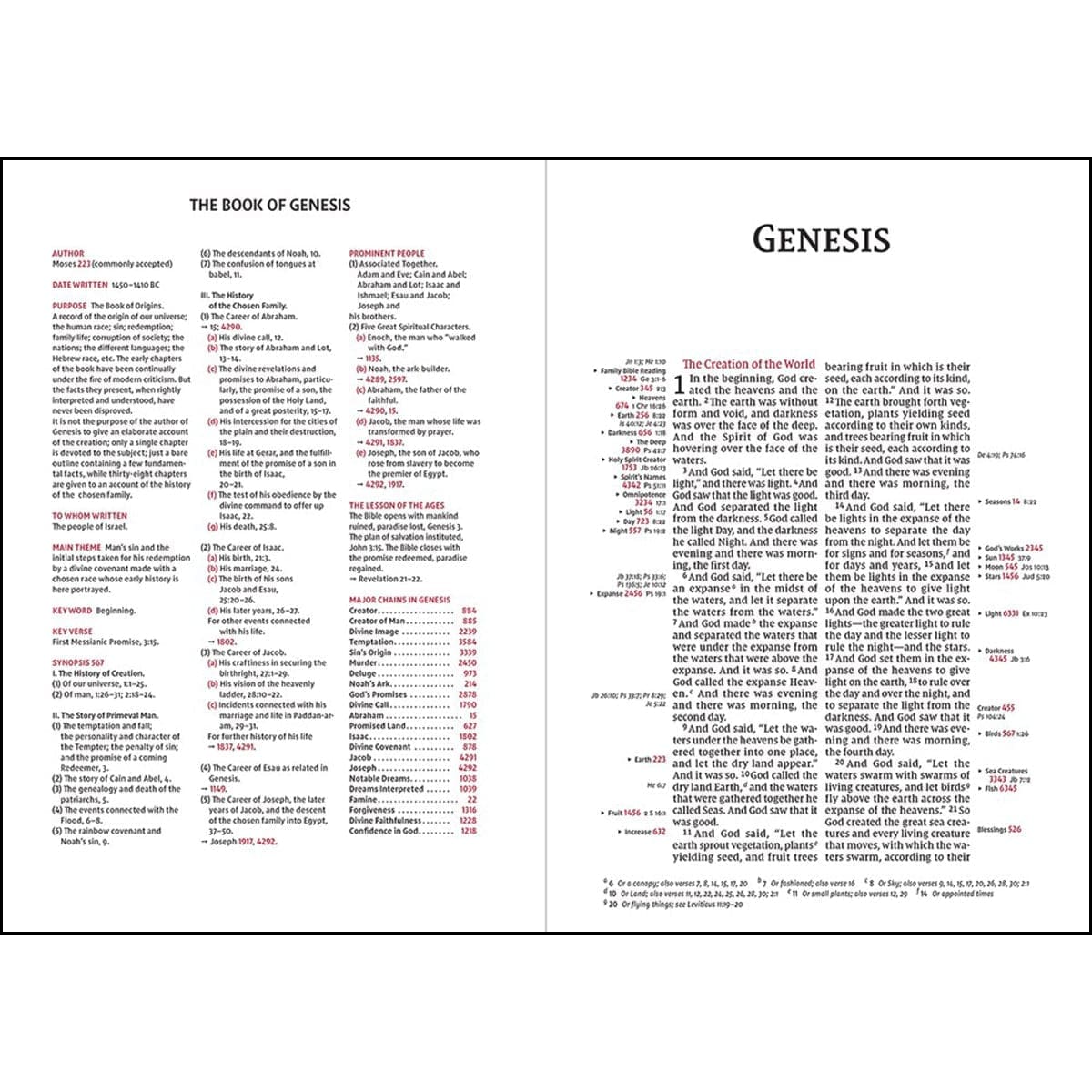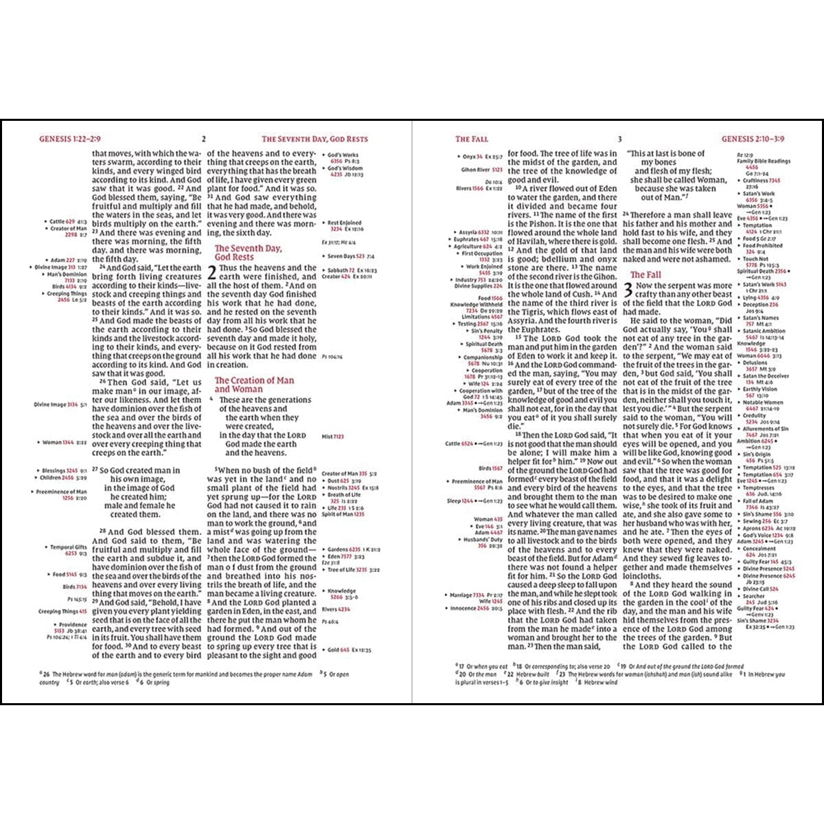 Beloved and acclaimed for more than five generations, the Thompson Chain-Reference® Bible is unparalleled in its ability to enrich personal devotions, topical study, and sermon preparation. This unique reference Bible enables you to search the breadth of Scripture’s teachings on thousands of topics and allows you to follow those topics throughout the entire Bible. With 100,000 references listed in the Bible’s margins, covering over 8,000 topics, the Chain-Reference System is an ideal tool for comprehensive topical study. The Thompson Chain-Reference Bible also offers a library of additional study resources that allows readers to interpret the Bible using related scripture passages rather than consulting a commentary.