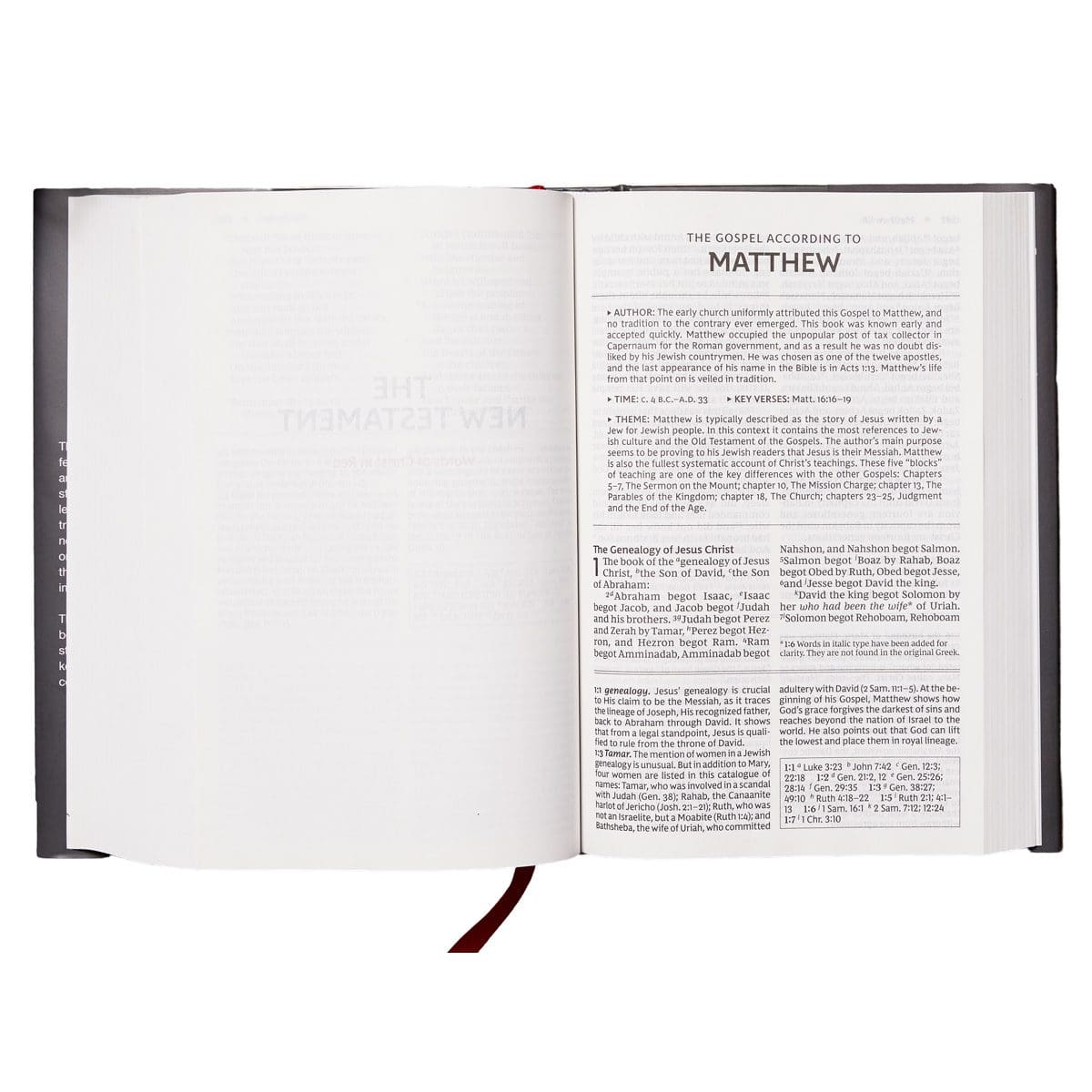 • Durable and flexible Smyth-sewn binding allows the Bible to lay flat wherever you are reading