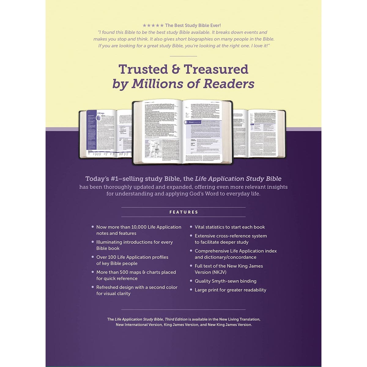The Life Application Study Bible, Third Edition includes the full text of the Holy Bible in the New King James Version (NKJV).