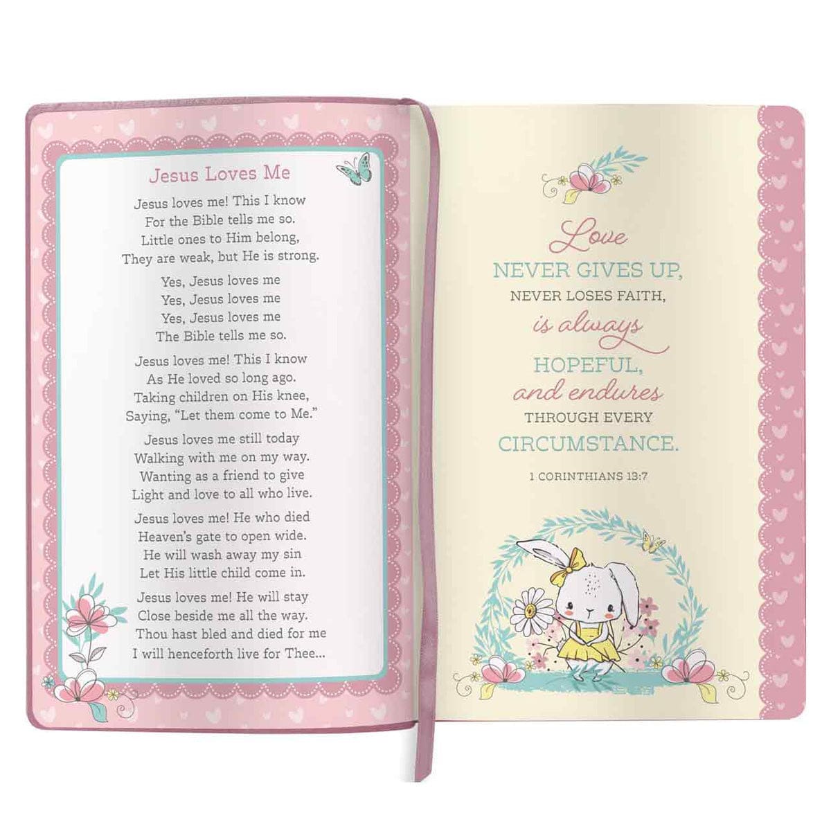 • 32 Full-color pages with prayers, hymns, special Bible memory verses, a family tree and space to record information on Baby’s birth, christening or baptism and a special prayer from Mom and Dad.