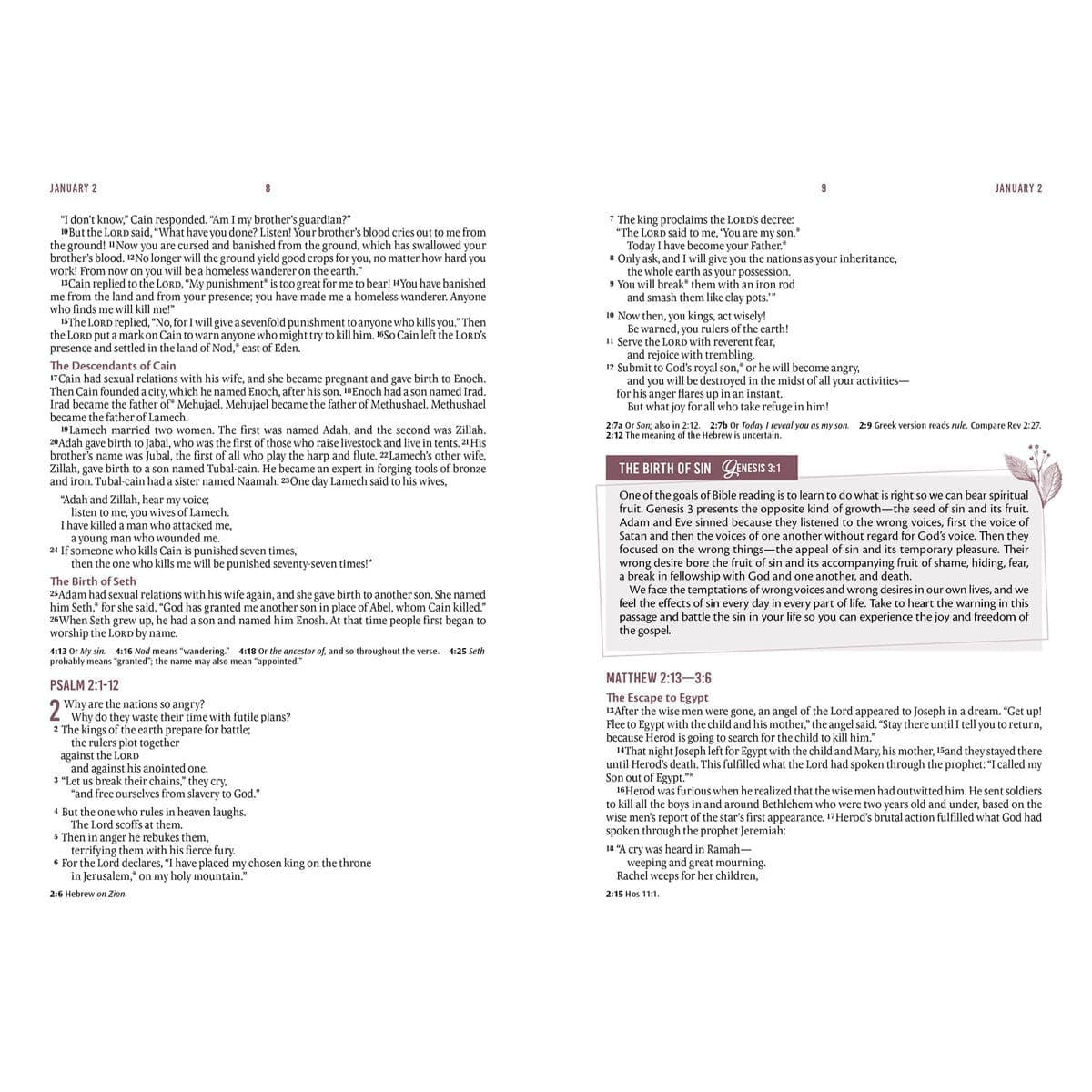 - Daily portions from the Old and New Testaments, Psalms, and Proverbs.