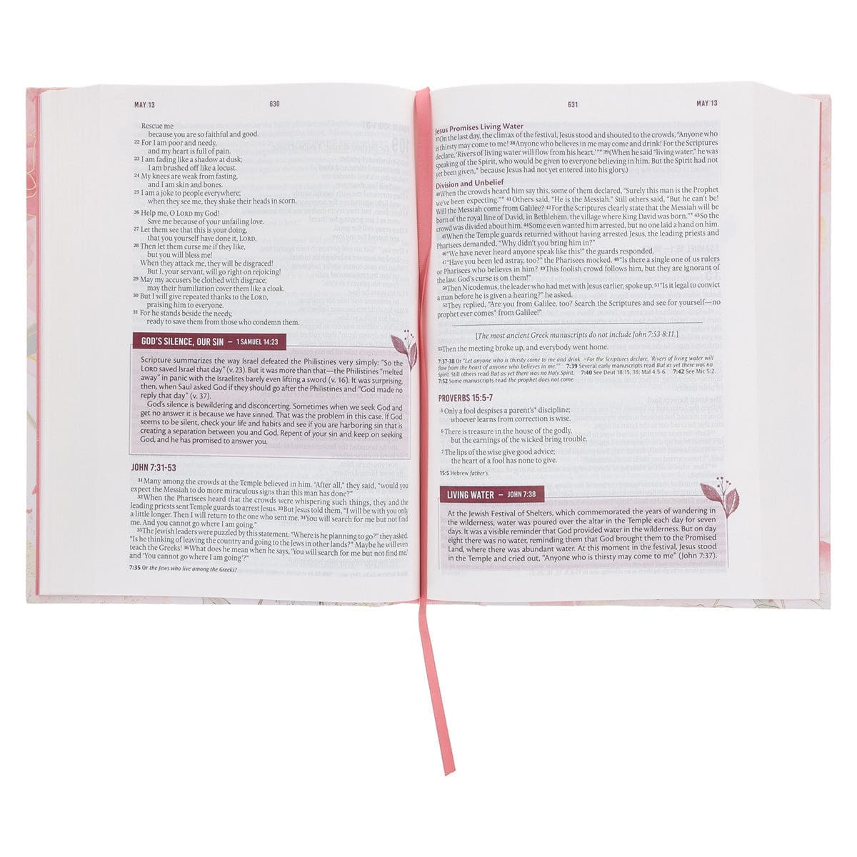 NLT Pink Floral Hardcover Everyday Devotional Bible for Women