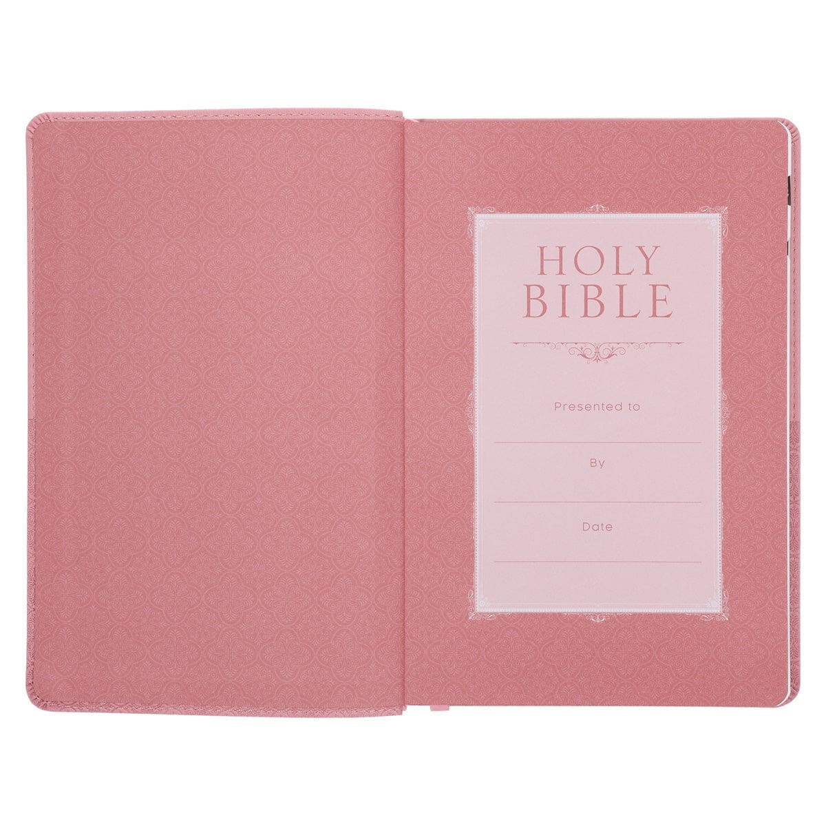 NLT Pink Pattern Faux Leather Standard Bible Thumb Indexed