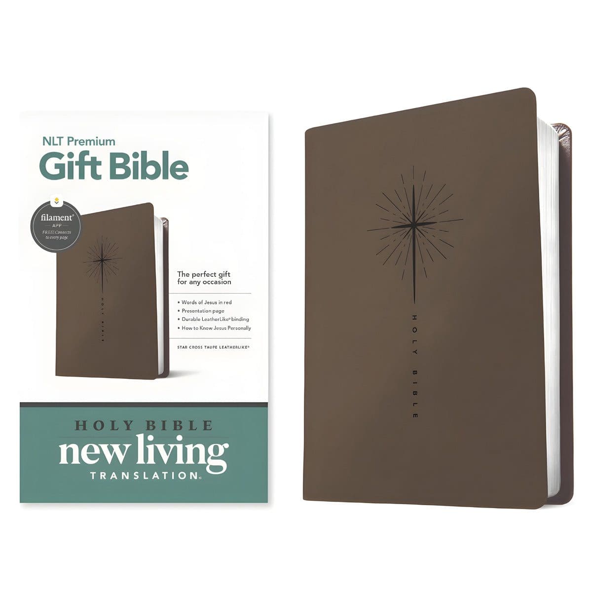 NLT Star Cross Taupe Imitation Leather Premium Gift Bible Red Letter