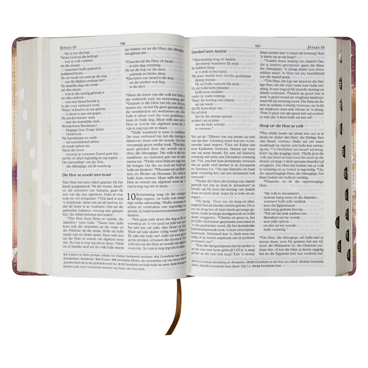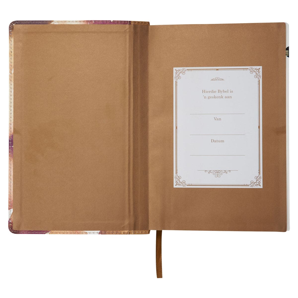 NLV Roesbruin & Goud Linne Standaard Bybel Met Duimgrepe