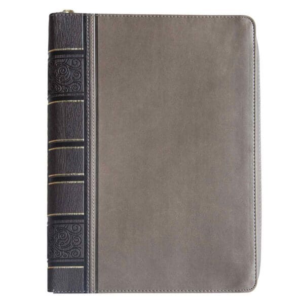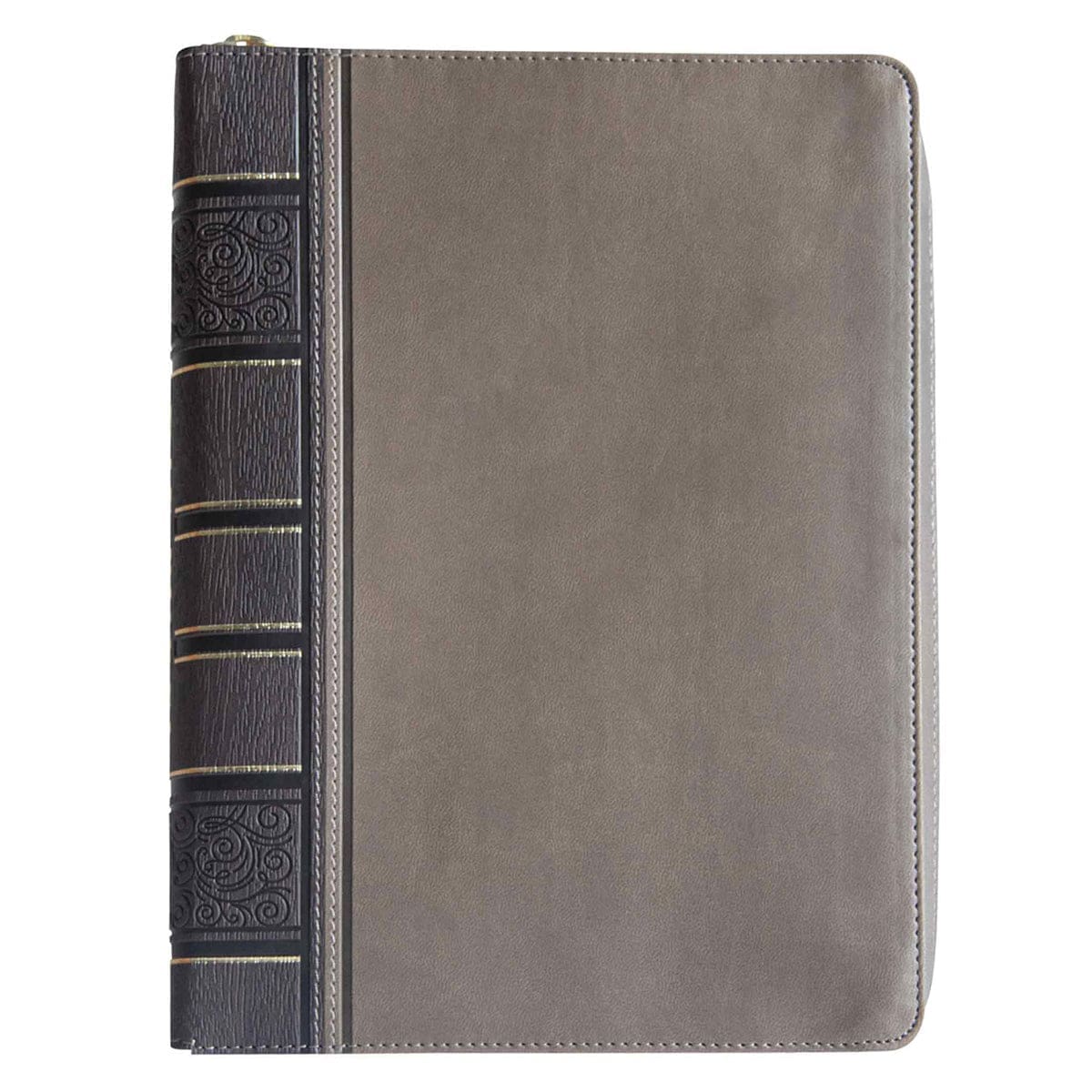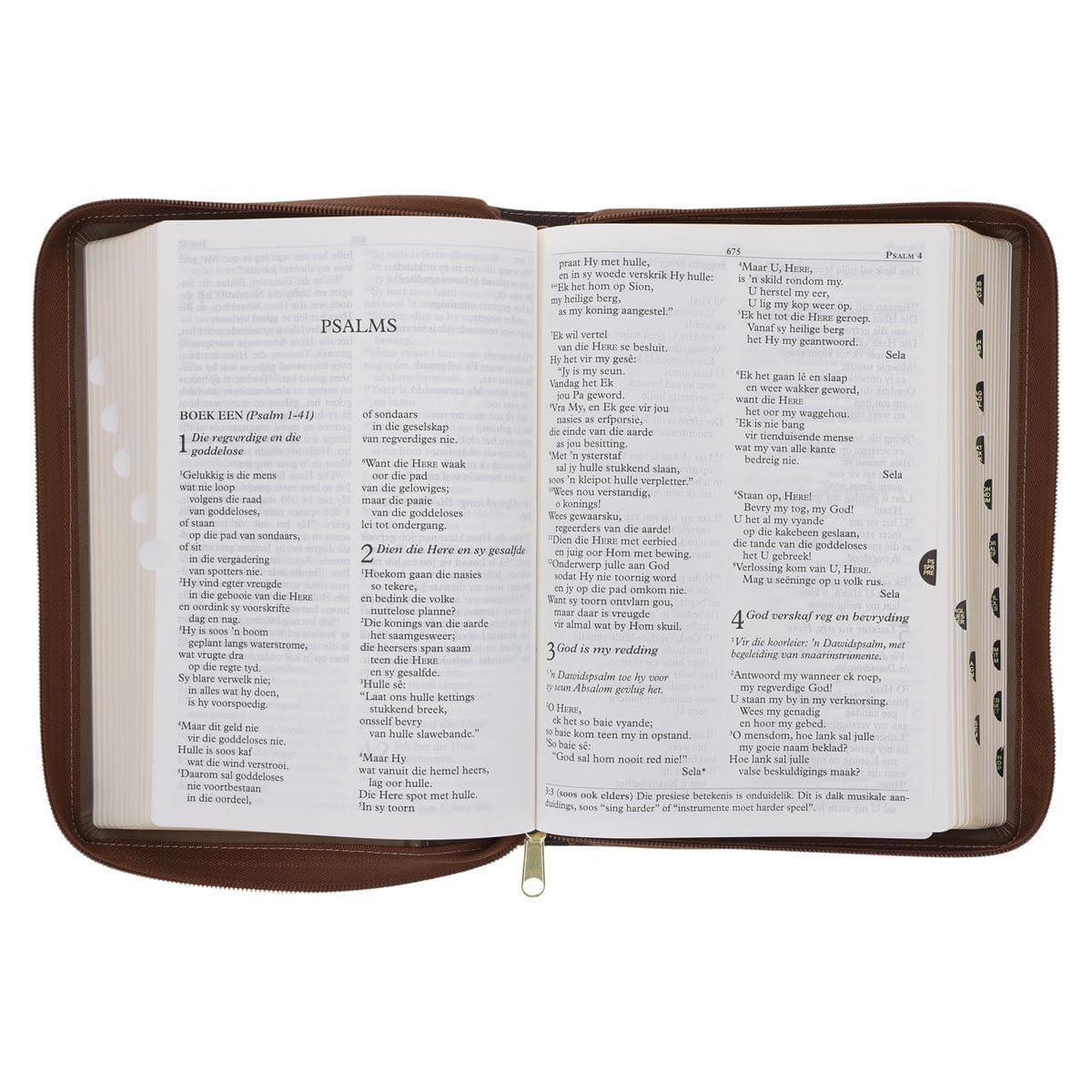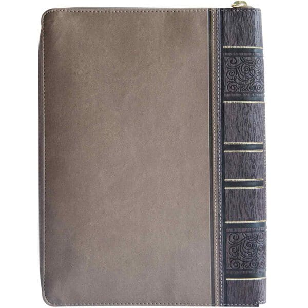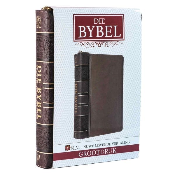 NLV Tweekleur Bruin Kunsleer Bybel Grootdruk Met Ritssluiter & Duimgrepe