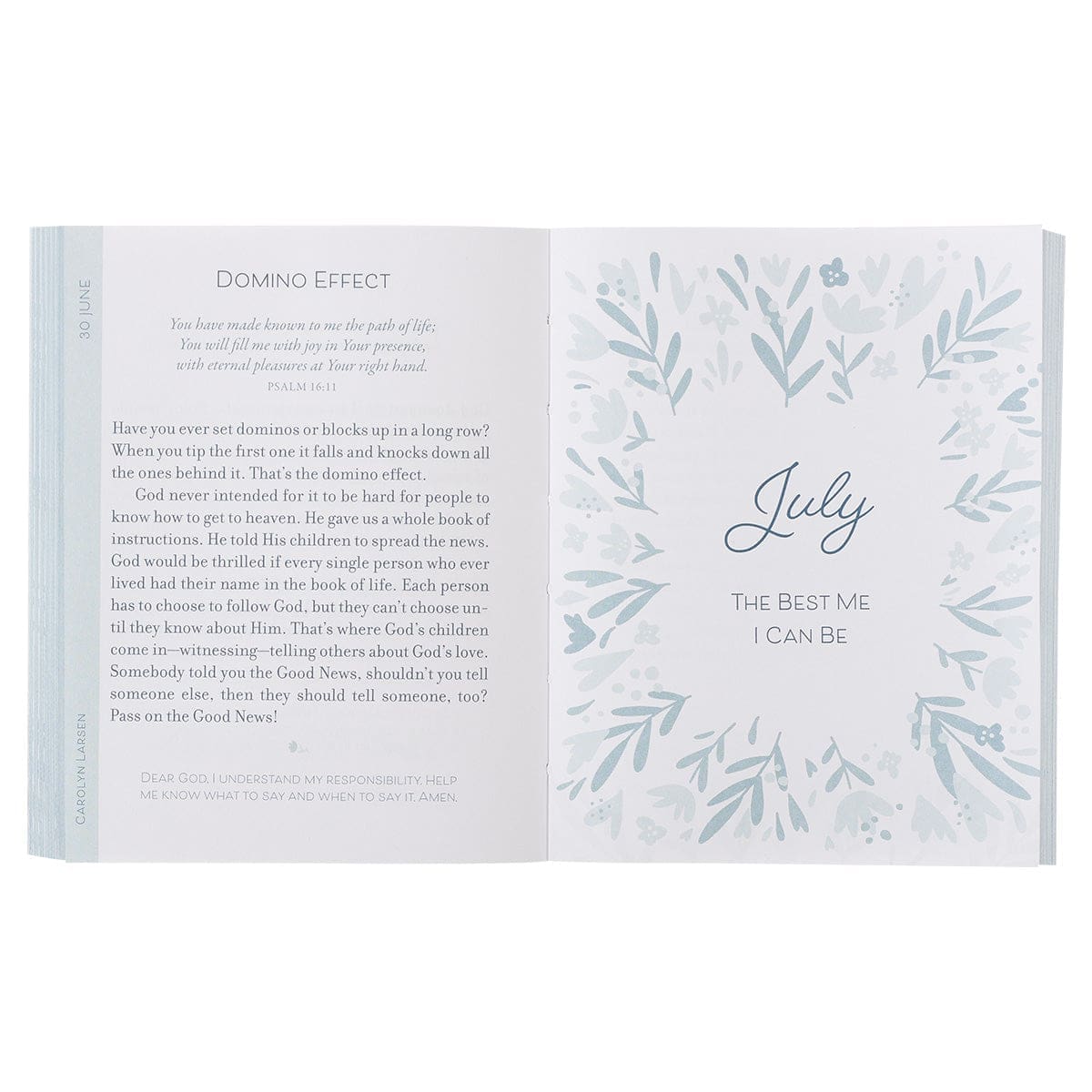 One-Minute Devotions for Girls is authored by a renown writer of Christian books for youth, Carolyn Larsen. For every day of the year, Scripture verse is combined with a child-oriented, real life situational explanation and a simple prayer.