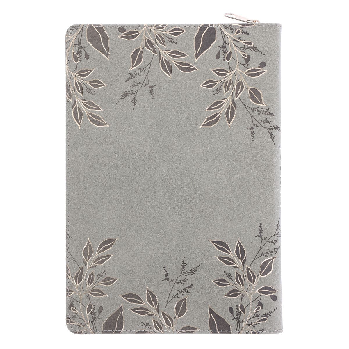 Seek the Lord and His Strength Grey Faux Leather Journal with Zipped Closure