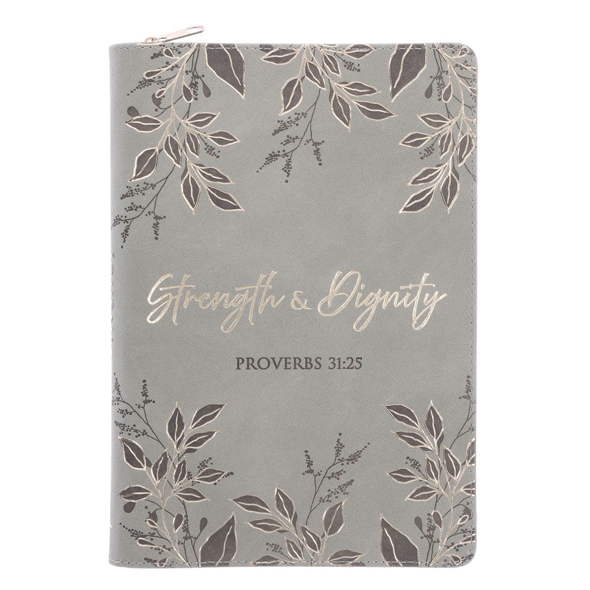 Strength and Dignity Sage Faux Leather Journal with Zipped Closure