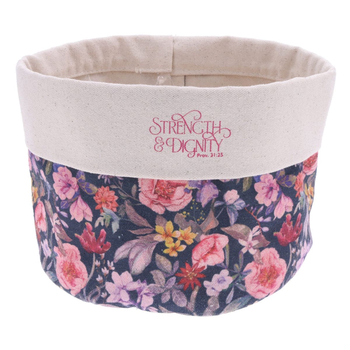 Let the Strength & Dignity Proverbs 31 Blossom Canvas Planter Cover bring new life to your household or room with its encouraging message.