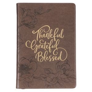 Set some time apart to journal your thoughts and prayers in this Thankful Grateful Blessed Faux Leather Journal With Zipped Closure.