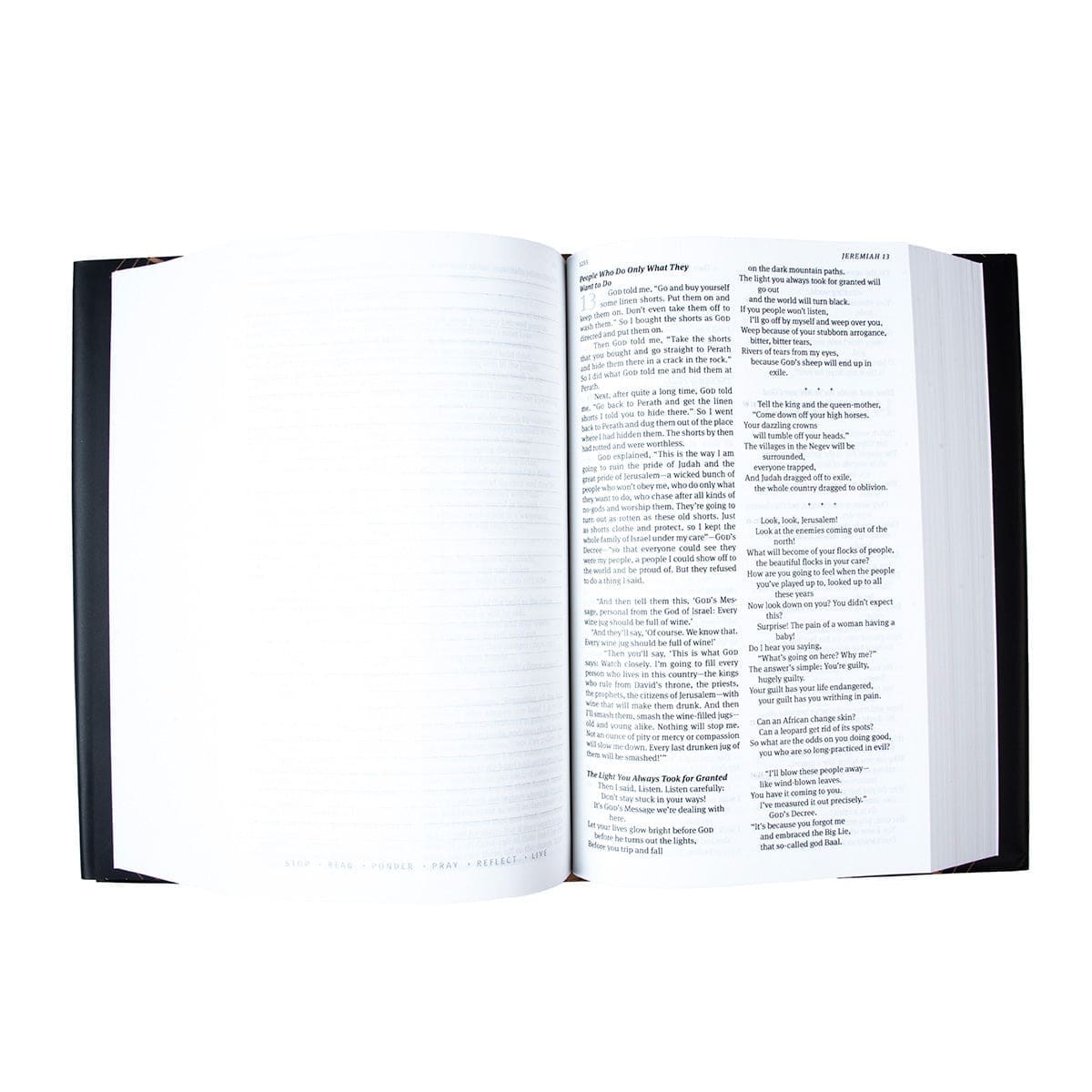 This beautiful reading Bible introduces the timeless practice of lectio divina. Learn the practice with 150 guided reflections, then enjoy putting prayerful reading to practice, with ample space for journaling your observations, reflections, and prayers on high-quality paper.