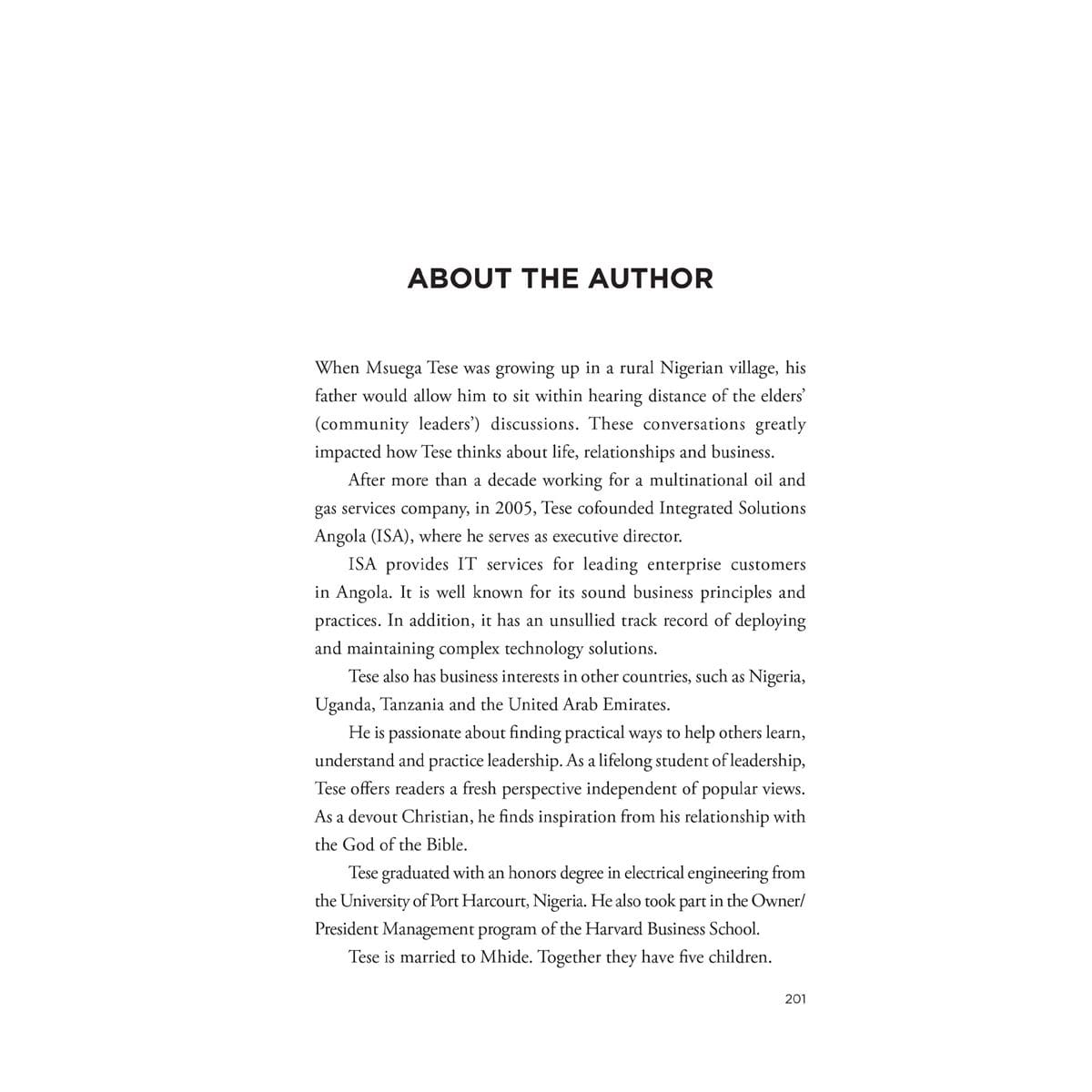 In The Versatile Leader: The Confidence to Excel in Every Situation, Msuega Tese, the co-founder of a successful information technology company in Angola, offers a new and refreshing approach to leadership. He defines leadership as “figuring out your beliefs and having the guts and/or the ability to act on them in such a way that adds value to others’’. Presented in a concise and easily digestible way with practical applications, he shows the reader step by step how to become a versatile leader – a person of integrity who, along with others, creates valued outcomes by adapting their leadership style for different situations. Whether you are the leader of a church program or the CEO of a company, The Versatile Leader will equip you to lay the foundation for versatile leadership and excel in every situation with confidence.