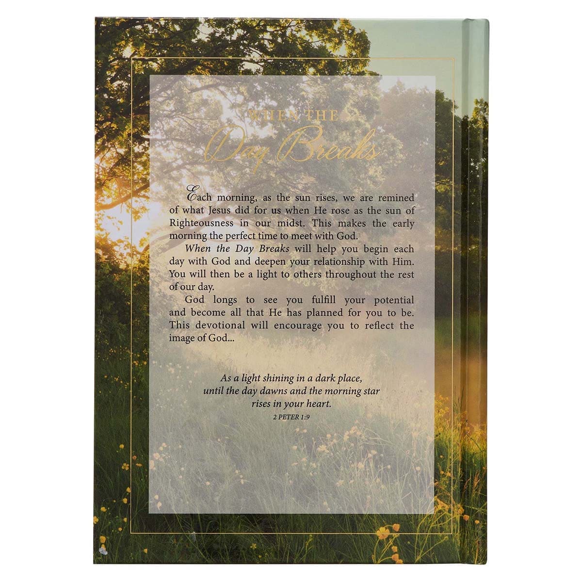Start each day on a positive and inspiring note with 366 refreshing devotions especially for women. When the Day Breaks will help you deepen your relationship with God and encourage you to be a shining light, reflecting His image to others throughout the day. As you make time to meet with God in the early morning, let the sunrise remind you of what Jesus did when He rose as the Sun of Righteousness in our midst. This hardcover devotional is beautifully designed, and a ribbon marker allows you to mark your progress through the book.