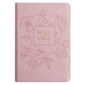 KJV Pink Floral Faux Leather Compact Bible Large Print