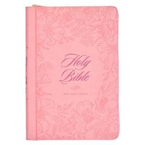 KJV Pink Floral Faux Leather Flexcover Deluxe Gift Bible With Zip