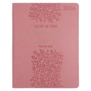 2026 A4 Dagboek – Professionele Jaarbeplanner – God Is Ons Toevlug en Ons Sterkte – Kunsleer