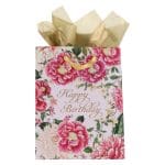 Joy to the World the Lord Is Come Poinsettia Landscape Gift Bag with Gift Tag