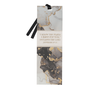Encourage a friend who is starting a new chapter in life when you share the I Know the Plans Black & Gray Marbled Premium Bookmark as a small token of support and encouragement.